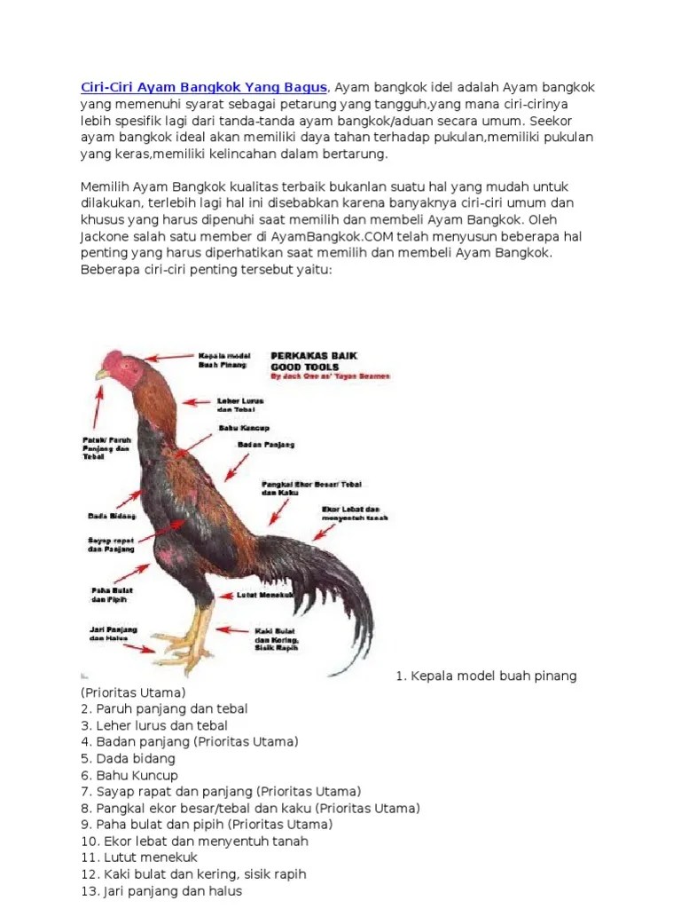 Mengetahui jenis ayam bangkok ekor lidi salah satu jenis ayam bangkok ini sangat banyak dikagumi. Sesuai dengan namanya, ayam ini berasal dari negara tetangga, yaitu thailand. Tidak ada bulu yang layu pada ekornya. Untuk ayam bangkok yang sudah dewasa harus mempunyai kandang yang terpisah, sedangankan ayam yang betina bisa dikandangkan dengan cara berkelompok. Nah manfaat mengkonsumsi daging ayam yaitu dapat menurunkan berat badan, menyehatkan tulang, dan dapat meningkatkan jumlah protein, fikiran aktif dan tenang. Usaha ternak ayam bangkok mendapatkan keuntungan yang cukup menjanjikan jika dihitung. Seekor ayam bangkok ideal akan memiliki daya tahan terhadap pukulan, memiliki pukulan yang keras, memiliki kelincahan dalam bertarung. Bentuk ekor ayam bangkok juara. Serta memiliki bulu ekor yang kuat dan panjang. 2.kepala,yg dianggap bagus bentuknya agak membulat seperti kepala burung merpati,dgn kulit tebal.biasanya mau ganti pukul.sebaliknya ayam yg. ekor ayam bangkok yang melengkung ke atas ( seperti ekor ayam kampung ) tidak cocok untuk ayam yang akan ditarungkan. Untuk ayam bangkok dewasa kandang biasanya dibuat khusus untuk 1 ekor ayam. ayam bangkok bisa dijual per ekor dengan harga rp.